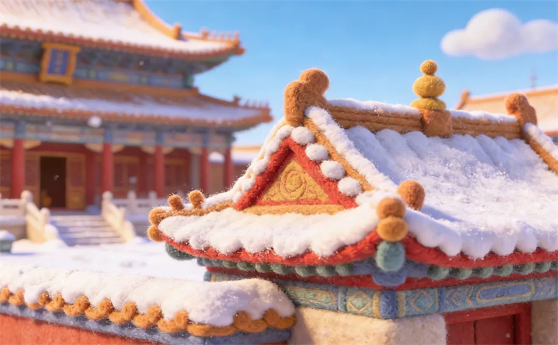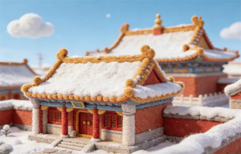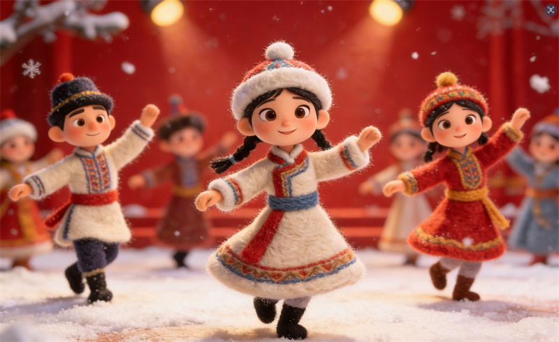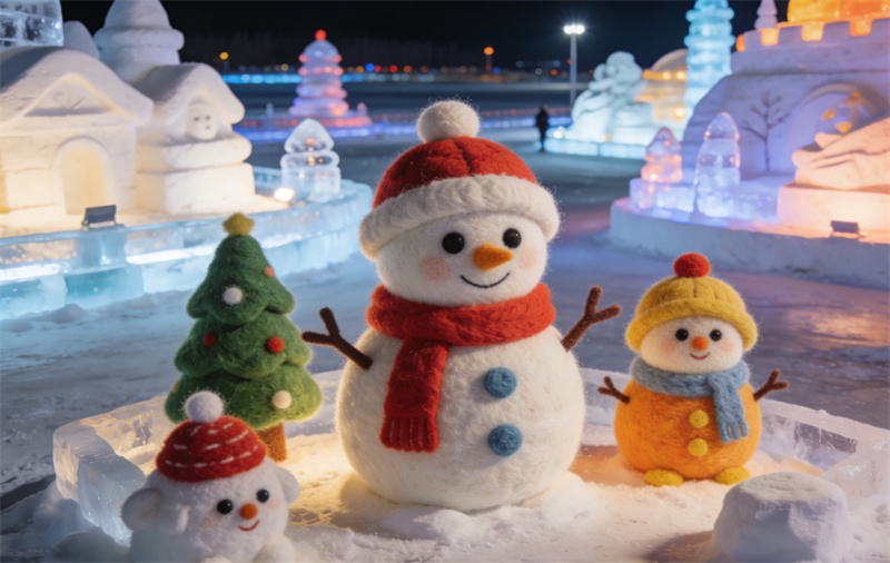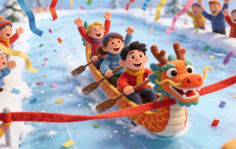冰面倒映着蓝天与雪堆,人们在雪圈上飞驰的身影、冰上龙舟的热闹场景,都是动态毛毡画的绝佳素材。傍晚时分的夕阳为冰面镀上暖光,拍出来的照片自带柔光滤镜。