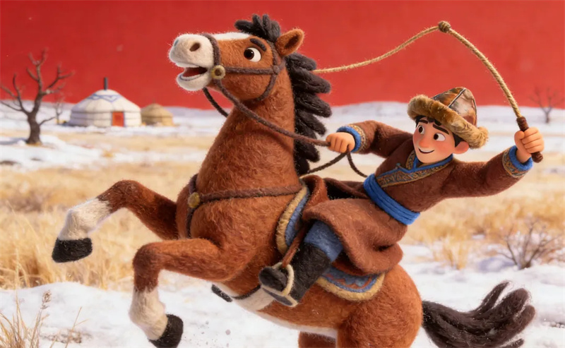 策马不止在夏天,冬季草原更别有一番风味,阳光洒下时,草原泛着柔光,按下快门叠加特效,治愈感直接拉满。马背民族的飒爽英姿在雪地里更显豪迈,随手拍都是“草原勇士”毛毡风大片。