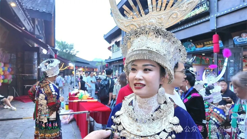 “雷山对于我们苗族来说,它有很多美食,还有包括它的服装都很独特,牛角、服饰的蓝色、银饰都非常的漂亮。雷山的美食也有很多,包括我们的鱼酱酸这些也属于是我们的非遗,所以我觉得雷山还是很有特色。”