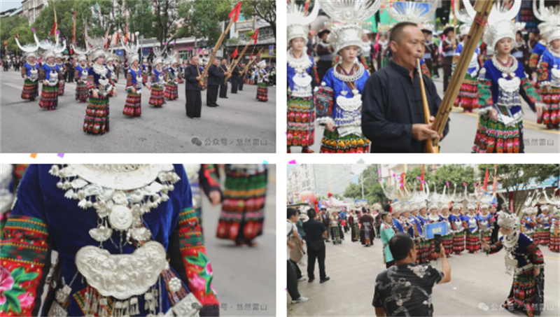 当日午后,丹寨县城主干道上人流如织,我县代表团的成员们身着精美的苗族盛装,女子头戴银冠、项佩银圈,男子手持芦笙,在巡游队伍中格外引人注目。盛装上的苗绣图案栩栩如生,银饰在阳光下熠熠生辉,展现了苗族文化的独特魅力,吸引了大量游客驻足拍照。