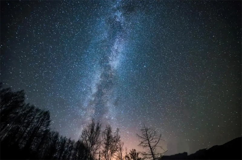 凌晨4点驱车至石塘林停车场旁小坡,搭帐篷仰望璀璨银河。天色渐亮,草原和林海在晨雾中若隐若现,构成秋季最美画卷。(记得穿羽绒服贴暖宝宝)