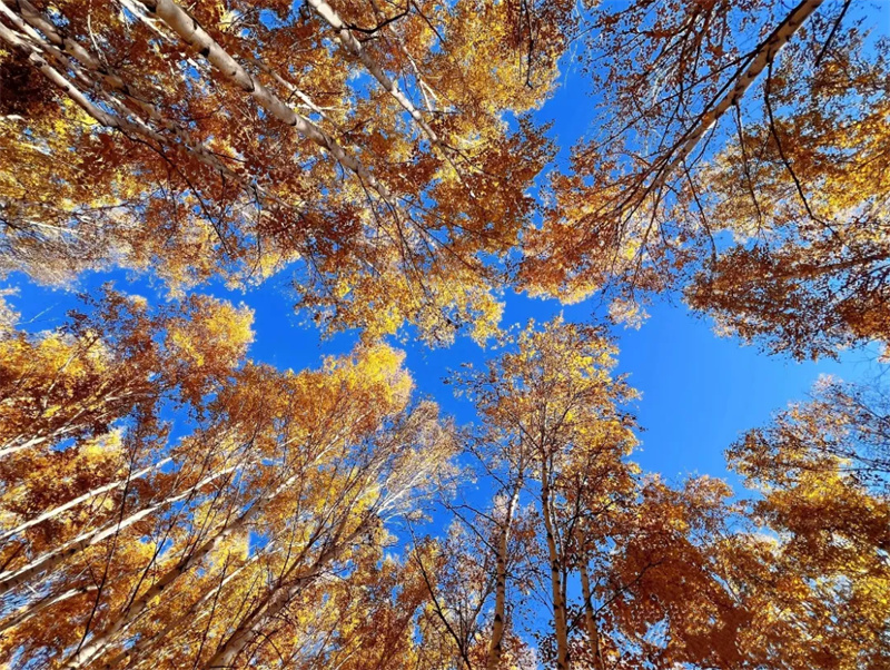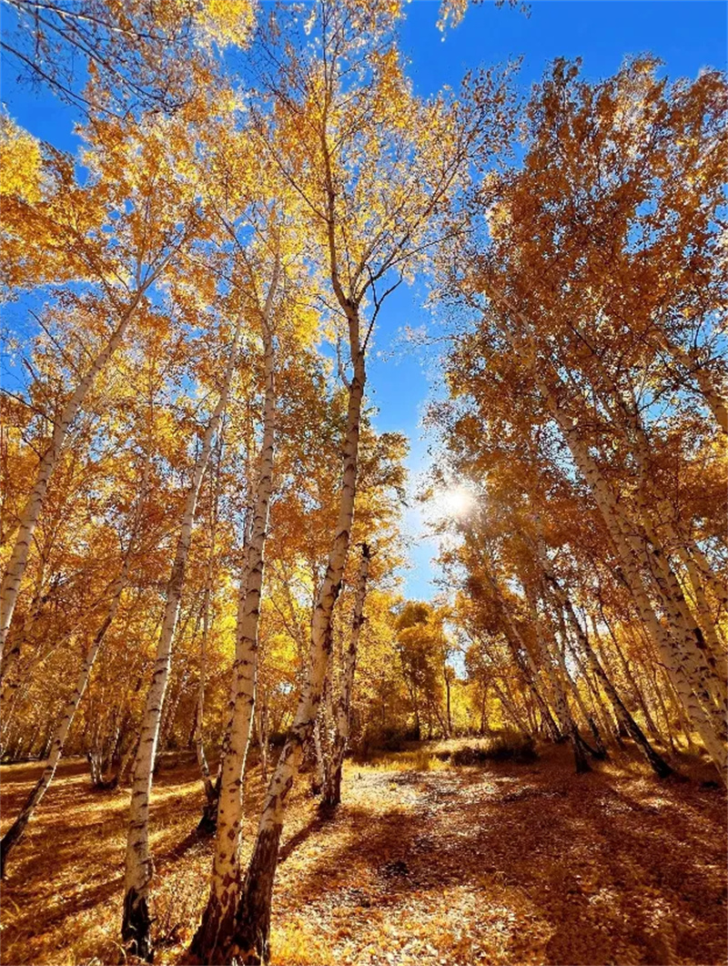 柴河月亮湾旁:独享一片“金渐层”白桦林