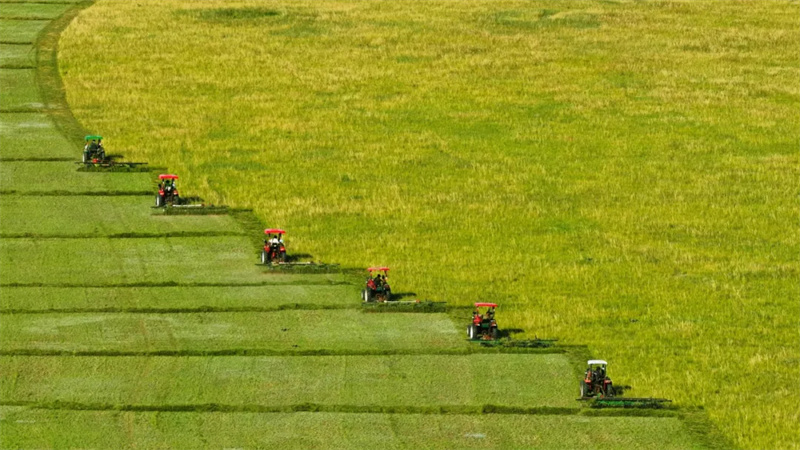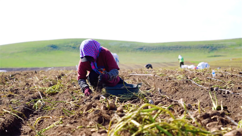 秋分至,秋意浓。万物成熟、牛羊肥壮,人与自然和谐共生的画卷在天地间铺展,忙碌一载的农牧民们,正用勤劳的双手奏响丰收欢歌,以实干编织出动人的劳动图景,让丰收的喜悦在草原上尽情流淌。