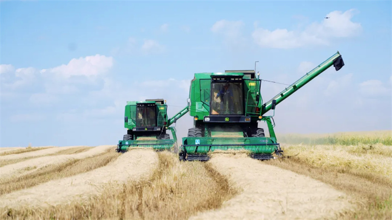 近年来,白音锡勒牧场通过品种改良、农机具优化、产业链延伸,持续调整农业生产结构,大力发展绿色产业,不断提升农作物产量与质量,让农牧民在产业发展中掌握更多主动权,切实分享产业增值红利。据介绍,今年白音锡勒牧场种植总规模达8万亩,其中小麦1万亩、马铃薯1万亩、青贮玉米600亩、莜麦等杂粮3万亩、甜菜5000亩、饲用燕麦草和苜蓿草等优质人工牧草2万亩。夕阳西下,染红天际,这片土地上的每一粒粮食,都是现代农牧业与传统农耕文明交织出的崭新希望。