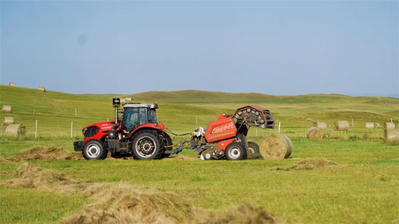 为守护草原生态、合理利用草原资源,毛登牧场逐年加大资金投入,持续提升机械化作业水平。如今,双刀打草机、高密度捆草机、新型垛草机、自动装草机等设备全面投入使用,实现打贮草作业全流程机械化。同时,牧场严格执行刈割制度,在刈割时间、刈割强度、留茬高度、预留草籽带等方面精准把控,将原本需要3-4个月的作业时间压缩至2个月左右。这一改变,不仅大幅提升了作业效率,更有效减少了机械对草原的碾压次数,为天然草牧场永续利用、实现可持续发展筑牢根基。