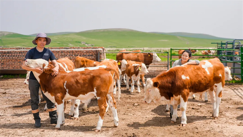 在乌兰哈拉嘎苏木额日和图敖包嘎查,青年牧民朝克巴达日呼与萨仁通拉嘎夫妇的丰收季,忙碌又充实。“今年雨水足、温度也合宜,5000亩自家打草场加上4000亩外租草场,亩产牧草从去年的2捆半涨到4捆!”朝克巴达日呼笑着算起丰收账,目前家里已储备100多吨牧草,不仅够60余头西门塔尔牛、200余只羊和100匹马安稳过冬,剩下的牧草还能出售增添收入。养殖收益同样亮眼,今年羔羊均价超900元,30头牛犊已顺利售出,余下10余头待售;夫妻俩还靠着售卖奶制品拓宽收入渠道,家庭年收入有望突破20万元。更难得的是,这对“科班出身”的牧民,将大学所学知识融入养殖实践,走出了一条规模化、机械化的现代牧业之路,让红火日子过得既有底气,更有奔头。