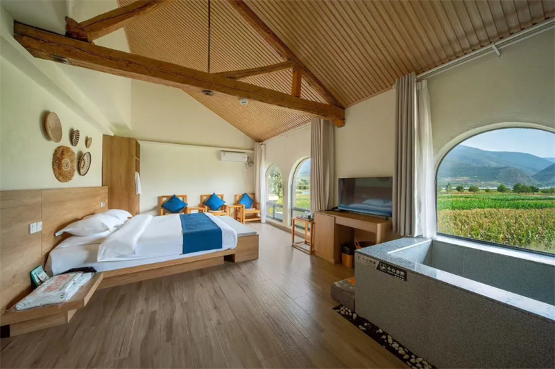 在卡斯镇,啊撒来田野温泉酒店历经三年被精心打造,这里的温泉与别处的相比,没有刺鼻的硫磺味,显得十分柔和。在这里,不仅能欣赏田园美景,聆听虫鸣鸟叫,感受到精神上的慰贴,也可以泡温泉,使身体放松。在泡完温泉后,可以回到自己的房间,拉开窗帘看着窗外的田野和山峦放空自己,享受静谧时光。