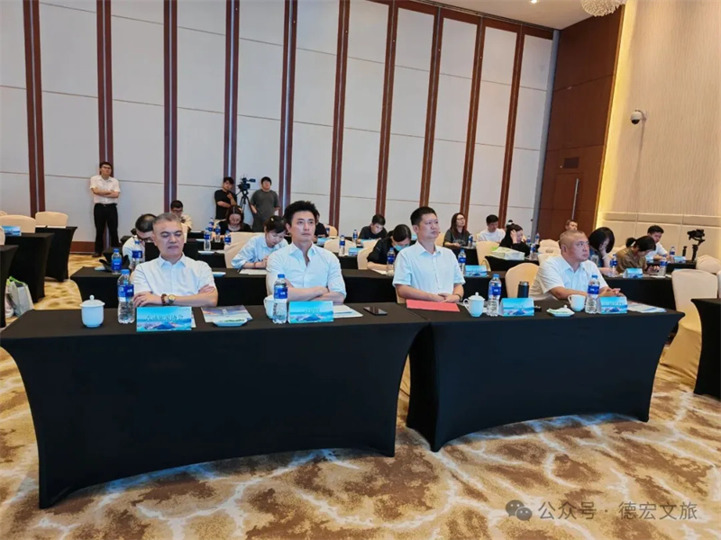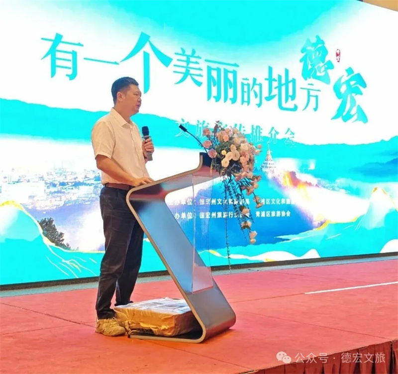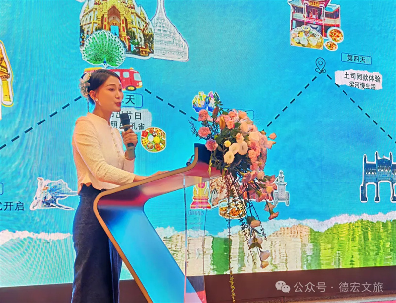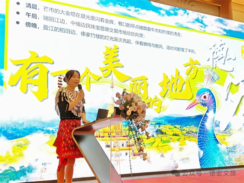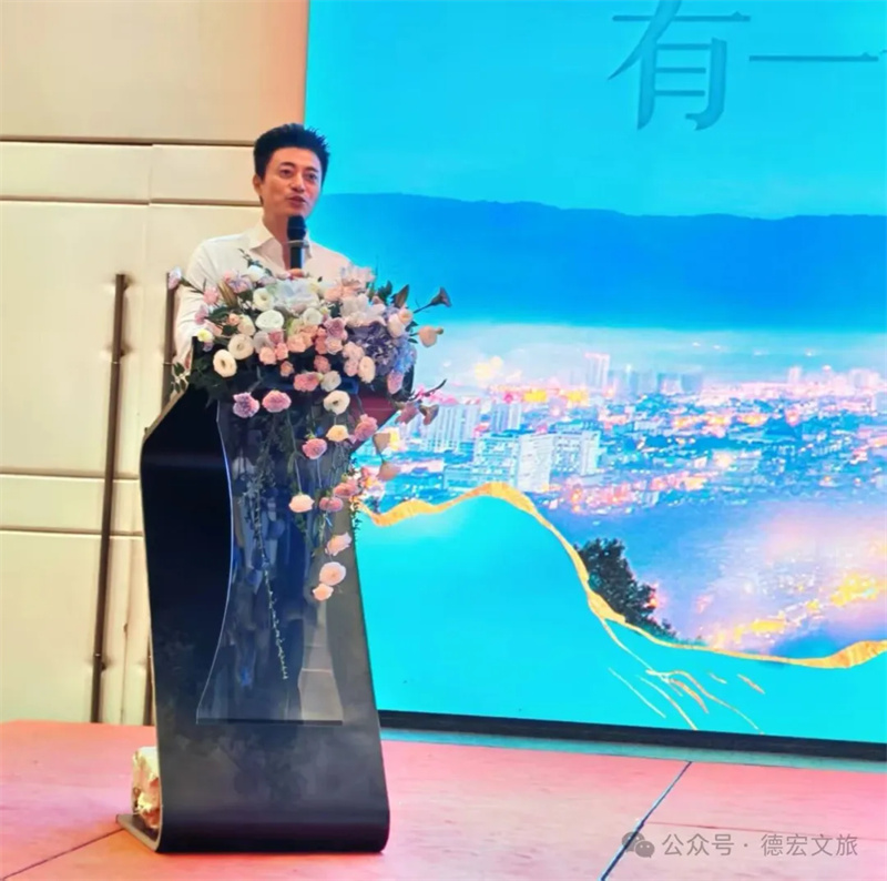会上,推介环节精彩纷呈。德宏州文化和旅游局宣传推广与对外交流合作科科长吴飞平进行了“旅居德宏”主题推介。德宏正全力打造“有一个美丽的地方”旅游金字招牌,是理想的旅居度假目的地。推介通过精美的图片、视频,全方位多维度的介绍,展示了德宏宜居、宜游、宜养的旅居资源与产品体系;德宏文旅推荐官周济蕊代表德宏州旅游行业协会现场发布了精心策划的“玩转德宏”旅游线路,为广大游客量身定制了涵盖生态观光、民族风情、边境体验、休闲康养的保姆级旅游行程。
