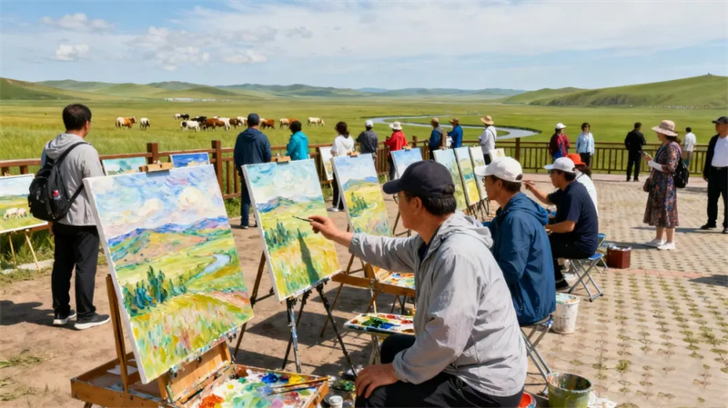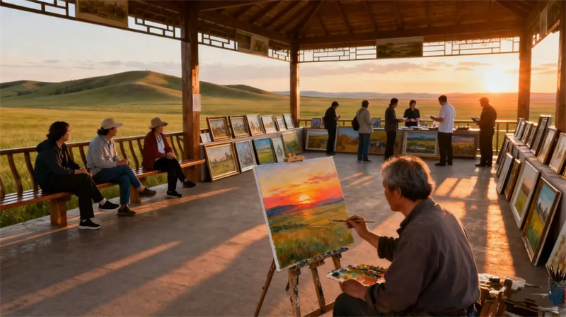 在二号观景台,依托草原魂画廊开展油画作品展,可赏油画,也可画油画,共同感受油画魅力。