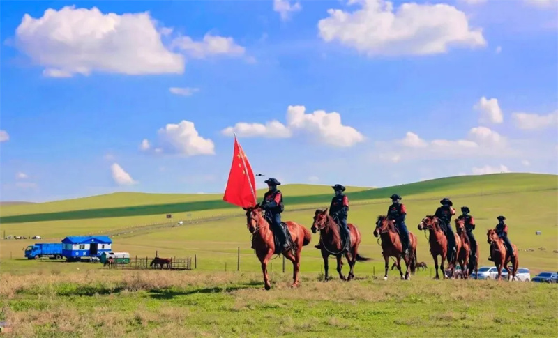 组织广大游客朋友在莫尔格勒河畔同唱《我和我的祖国》《呼伦贝尔大草原》,由海东青骑警队护旗,共同展开一面巨大国旗,设置特色签名墙,游客可打卡留念,共同度过独具特色的国庆节。