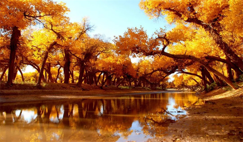 上午前往额济纳胡杨林旅游区(5A),景区位于达来呼布镇一道桥东100米处,2020年被评为国家5A级旅游景区,是全区9家国家5A级旅游景区之一。是国家级自然保护区、阿拉善沙漠世界地质公园的重要组成部分。林中胡杨参天,倒影林、湖心岛、红柳林海,在蓝天白云的映衬下,闪烁出大自然赐予额济纳最绚丽的色彩,被冠名“中国最美秋色”。中午返回达来呼布镇午餐后稍事休息。