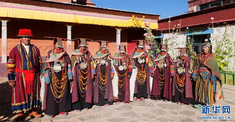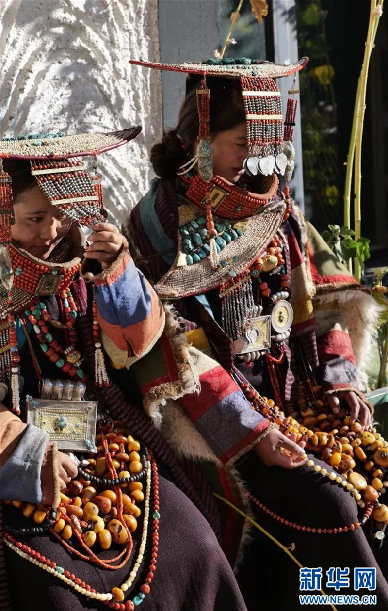 图为科迦村村民在展示普兰服饰(9月23日摄)。新华网 柑丹鸯琦摄
