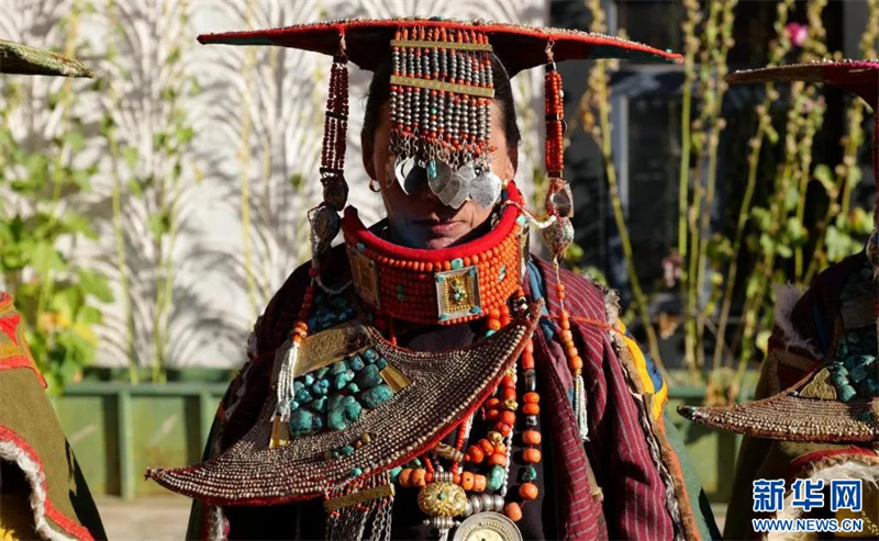 图为普兰服饰头饰(9月23日摄)。新华网 柑丹鸯琦摄