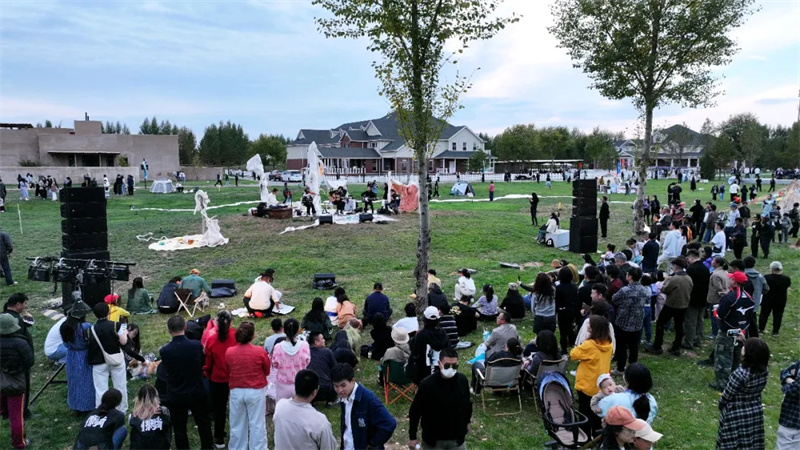 腾格里广场上,76架马头琴齐奏《万马奔腾》,千人共举国旗高唱《我和我的祖国》;仿元大都广场的76人呼麦表演空灵震撼,烤全牛盛宴拉近陌生人间的距离。国潮巡游中NPC与游客热情互动,《凤鸣九曲》实景剧以光影演绎民族文化精髓。