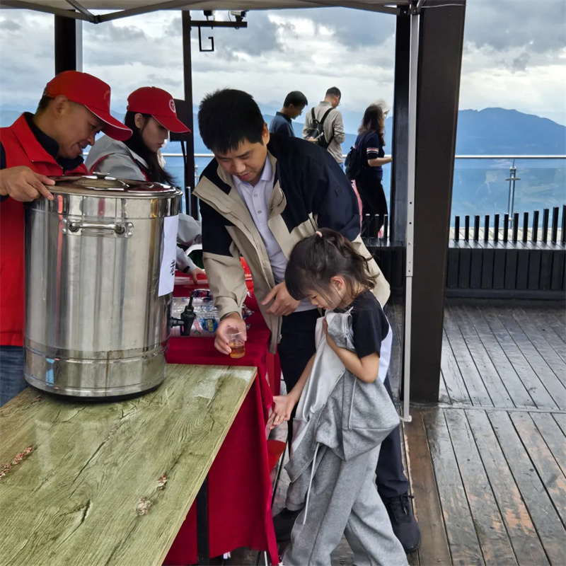奉节各景区常态化提供姜开水、老荫茶、热牛奶、面包、应急雨衣等物资,为游客提供贴心服务。