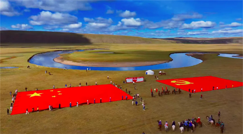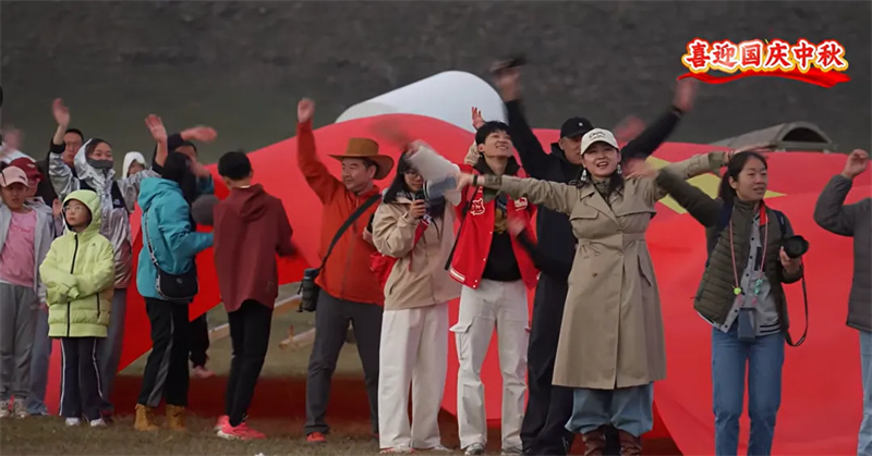 国庆节当天,莫尔格勒河畔上演震撼一幕:各族干部群众与各地游客齐聚草原,将2400平方米的巨幅国旗缓缓铺展,嘹亮的《歌唱祖国》响彻草原,大家把对祖国的赤诚与对家乡的热爱,融入歌声与国旗的红、草原的金之中,成为这个假期最动人的“爱国记忆”。