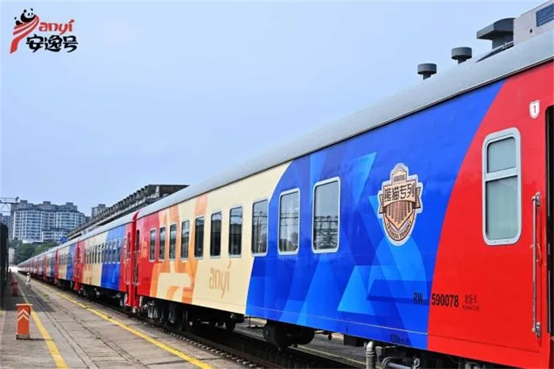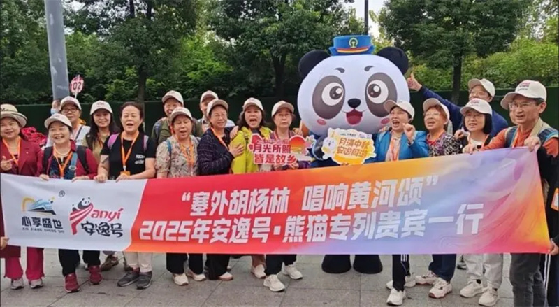 额济纳地处大漠腹地,交通曾是制约文旅发展的关键短板。旅游专列的开行精准覆盖额济纳胡杨林最佳观赏期,通过“铁路+文旅”深度融合,将分散的客源地与目的地高效连接,解决了游客“长途跋涉、中转烦琐”的痛点,形成了“南客北输、多地联动”的客流导入模式。其中,如“熊猫专列・安逸号”等高端专列创新引入“列车管家”服务理念,配备专业熊猫管家团队,为游客提供星级定制化服务,全方位保障旅途舒适度与体验感。