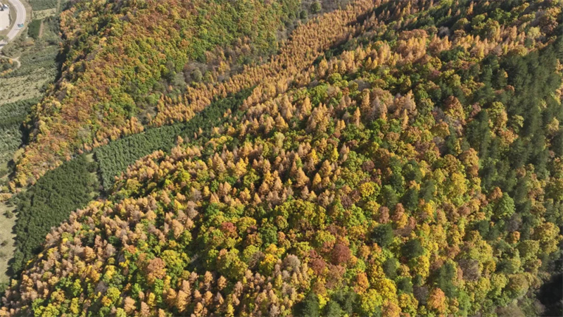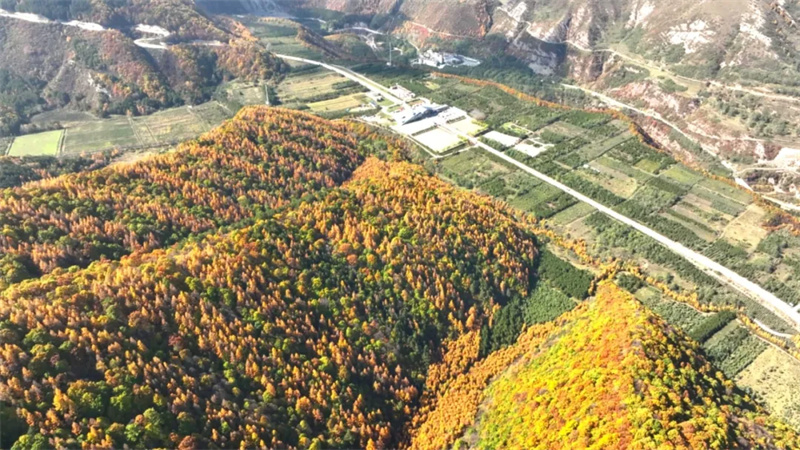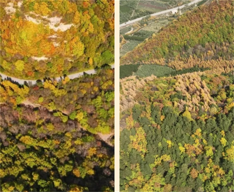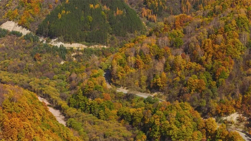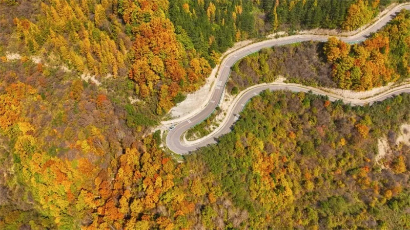 山脉、道路旁无不被热烈的秋色所渲染