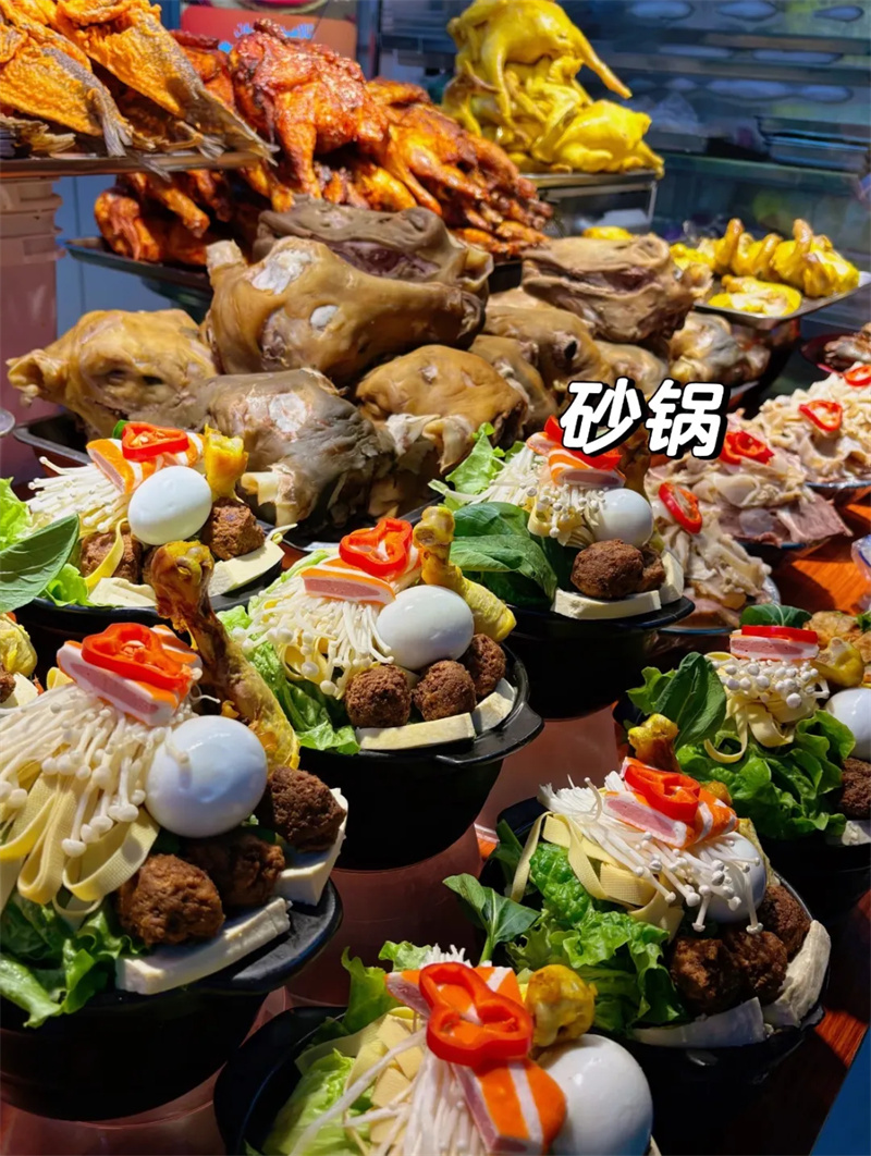 逛累了,就找个小摊位坐下,来份砂锅暖暖胃。粉丝、豆腐、青菜搭配着肉末或丸子,在砂锅里咕嘟咕嘟煮得入味,热气腾腾的一碗下肚,舒服又治愈。