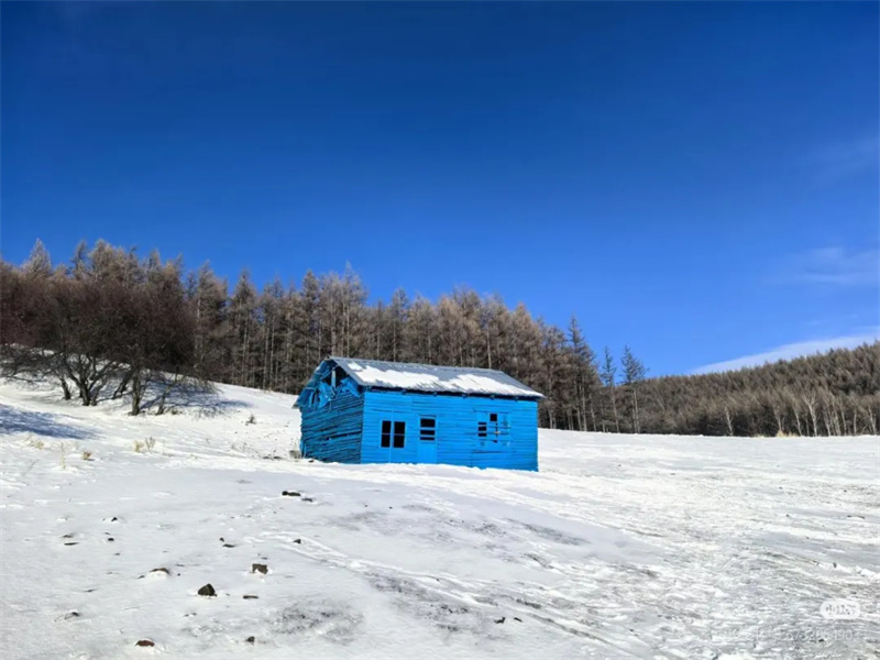 网红打卡点来啦!蓝色的小房子在白雪皑皑的背景下格外亮眼,随手一拍都是网红大片,朋友圈九宫格就差这张~