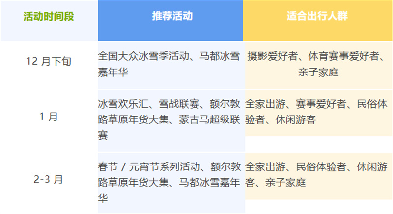 小贴士:活动周期长达4个月,元旦、寒假、春节都能安排,是亲子冬季游的首选地!