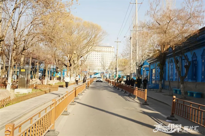 伊犁老城文化旅游区主街增设的人车分离隔离栏。卢钟 摄