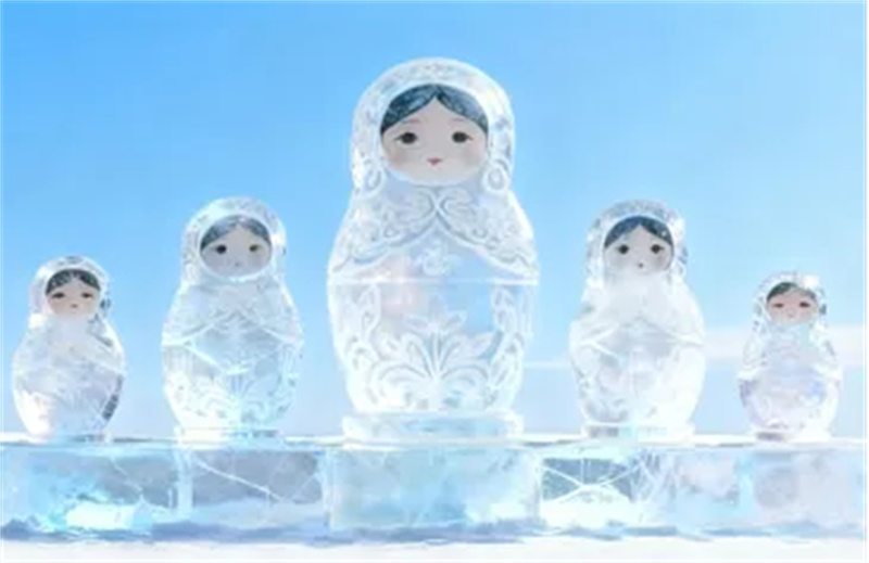 微缩冰雕国门、套娃冰雕、年年有鱼雕塑、浪漫雪屋……随手一拍,就是冰雪大片。