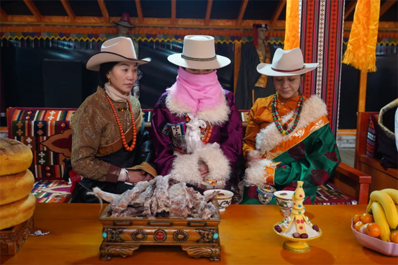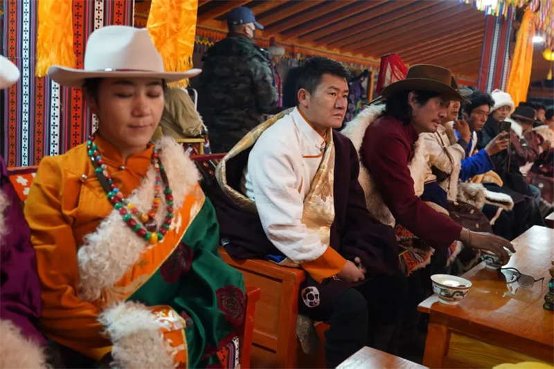 9号大帐,这座坐落于峨堡古城旁的特色大帐,非寻常歇脚处,而是一座活态的民族文化殿堂。步入温暖宽敞的帐内,欢腾的气息扑面而来。精彩纷呈的阿柔婚俗正在上演:风趣诙谐的“阿柔逗曲”引来满堂欢笑,蕴含古老智慧的仪式让人领略独特的地方传统。网络达人“哒哒瑙”在观看后兴奋地分享:“今天亲眼看到这么生动的演绎,感觉非遗文化一下子活过来了!那种诙谐又温馨的仪式感,还有大家对传统的尊重,特别打动我,我已经拍了视频,一定要分享给我的粉丝们。”这些并非舞台化的表演,而是鲜活文化的自然流露,让每一位来宾得以沉浸式触摸到这片土地深沉的文化脉搏。