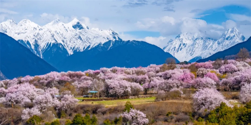 春季(3月底至4月初)是波密最浪漫的季节。波密桃花沟内数十万株野生桃树竞相绽放,绵延的粉白色花海与远处的雪山、湛蓝的天空构成绝美画卷。